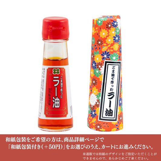 油茂製油の玉締め一番搾り・生搾り純正ごま油・ラー油 セット内容が選べるギフトセット